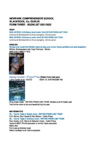 Third Year Booklists 2021/2022
